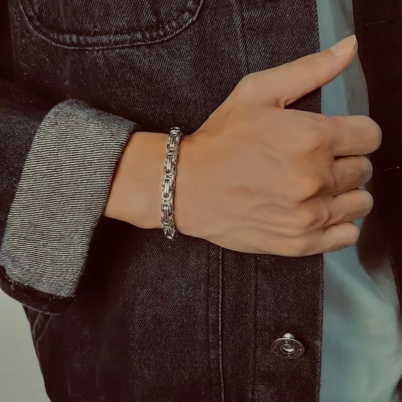 Elevate your style with our Imperial Chain Bracelet, a stunning blend of elegance and bold sophistication. Crafted with precision, this bracelet features intricately interwoven links that create a timeless chain design, exuding both strength and grace.