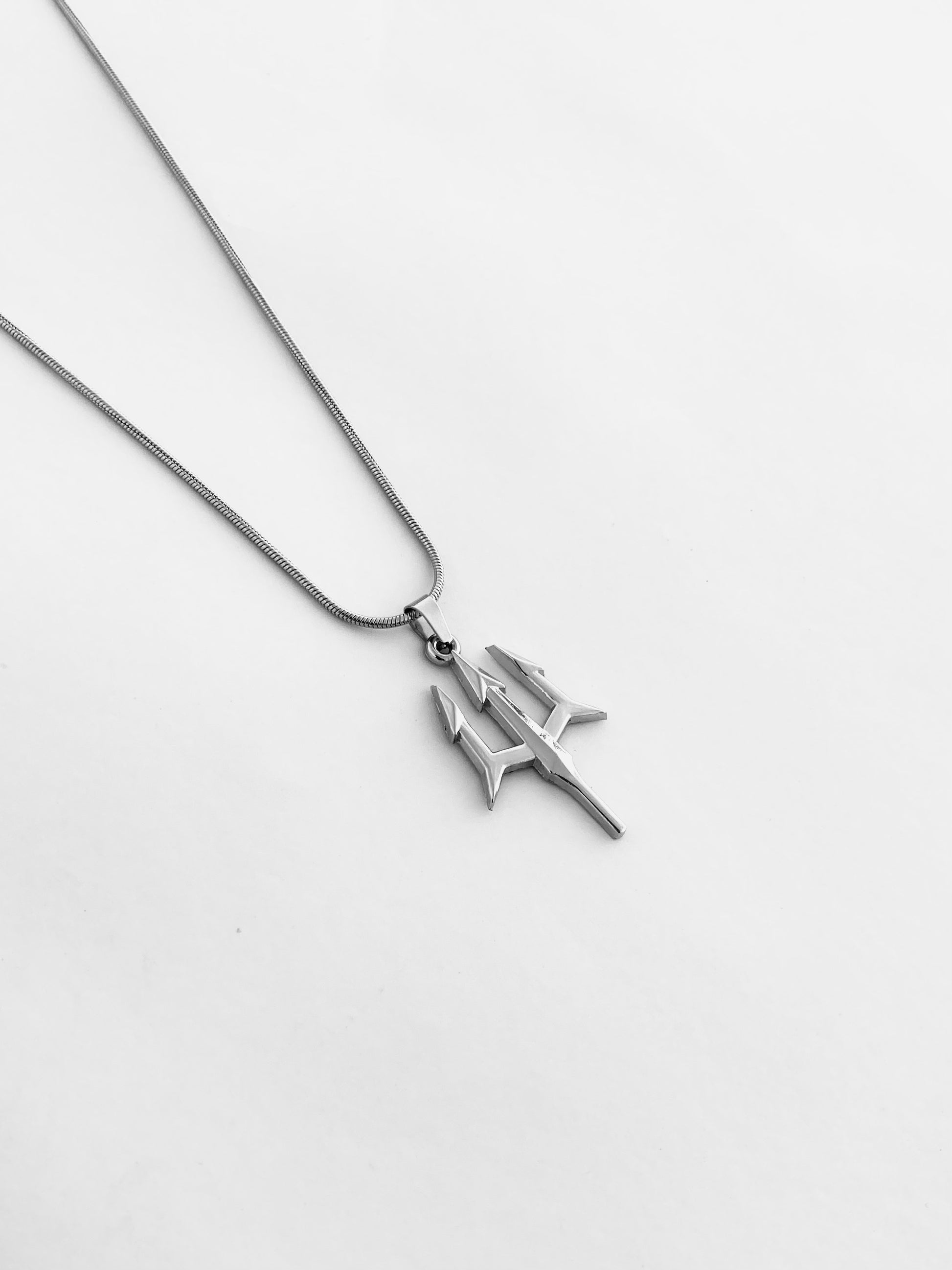 Unleash your inner king with this bold silver trident pendant. It's sleek, silver design slices through the ordinary, making a statement that's hard to ignore.